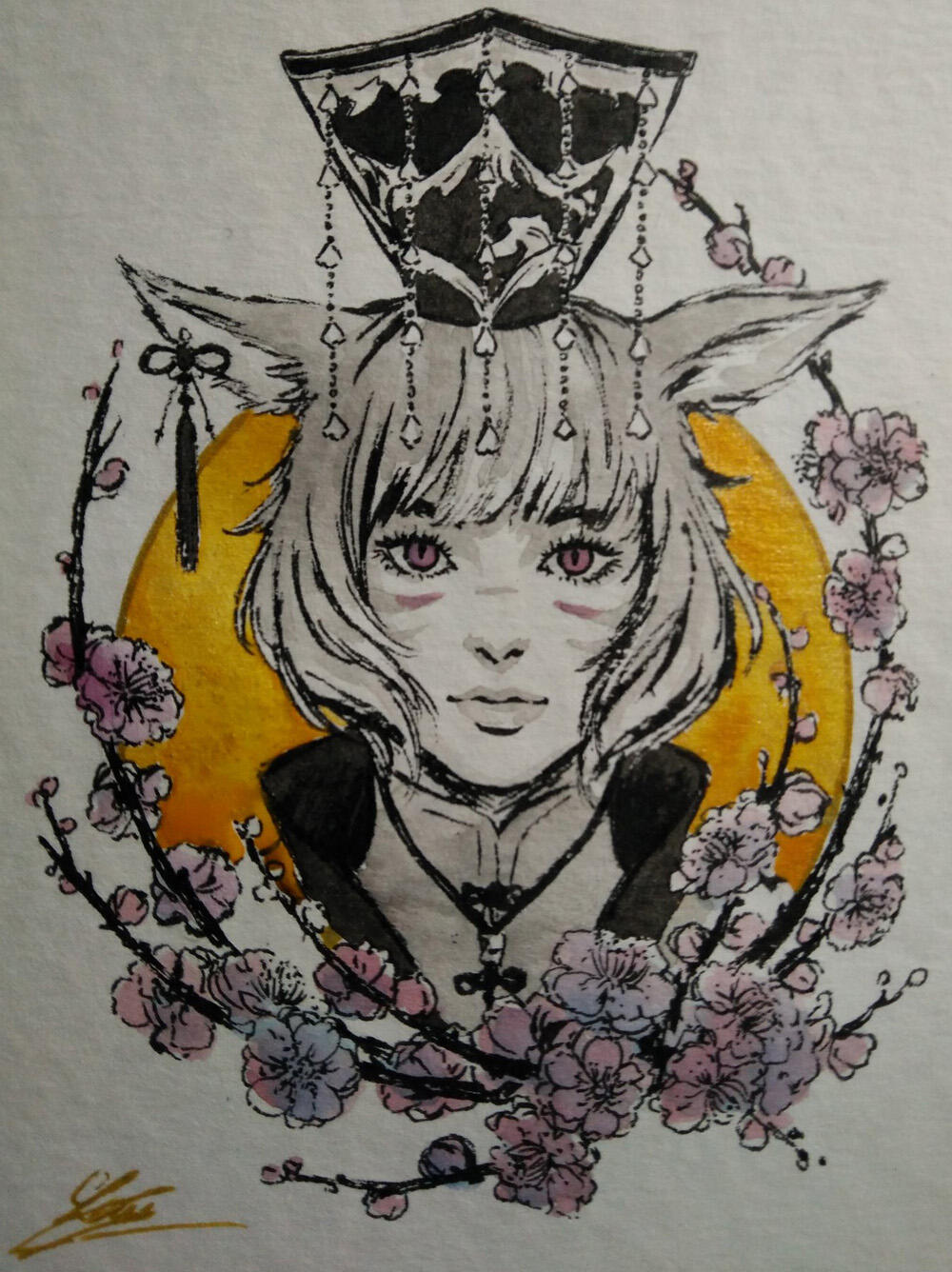 In the year 1557, Umeko Kuwanui was born in Kaiko (蚕), an old village within the region of Yanxia, nestled near the One River and a half-days' walk from the gates of Doma. Named for the humble but prized silkworm, it boasted a tradition of weaving high-quality textiles using techniques and styles passed through the generations, most of the population made their living through the industry, be it weaving, dyeing, or sewing. Umeko's mother Umeha, being single, was among these people, her family descended from a long line of textilers.Strong of will and stubborn to a fault, it also quickly became clear at a young age that the young miqo'te bore an incredibly unusual amount of magical potential. However, it also appeared to come with a heavy cost; her body suffered a debilitating weakness and fatigue that nothing could touch. She also struggled with the impossible task of wielding and controlling an aetherial reserve that healthy, fully-grown beings would be hard-pressed to master.Upon reaching her fifth year, and the events of the Battle of Silvertear and the resulting release of a massive pocket of aether and the unsealing of the Primals coming to pass on the other side of the star, Umeko fell inexplicably and seriously ill. Desperate for treatment and answers, Umeha finally turned to a local underground temple to see what could possibly be done. It was there she was referred to the Hingan island of Koshu, well renowned for its rich flora abundant in uncommon and sought-after medicinal herbs and its own centuries-old sect of conjury, known as Geomancy. Arrangements would then be made to smuggle her out of Yanxia and to a small, isolated shrine that was willing to take her, taking extraordinary care to avoid the Imperial gaze. It was there at Shintaisan Temple (神体山神社) that she would undergo training and initiation into the rites of magicks and servitude to the balance of nature and the kami as a shrine maiden, in some ways not unlike the conjury of Gridania, in the hope that control of her ability would bring with it relief from her malaise.And with it, she was given a new name: Sui Kune.As she aged, Sui's malaise seemed to only worsen as her body strained under an aetherial potency she continued to struggle to control. With the coming of the fall of Dalamud, and the ripple of effects felt even on the other side of the world, once again Sui fell seriously ill ten years later at the age of 15 summers and became bedbound for weeks. Not at all helping matters was the Garlean occupation of Doma, which despite the shrine's isolation in Koshu was still well-felt, and seemed to only grow more aggressive in asserting itself as time went on. More and more did the threads of fate seem to point to Sui having to uproot and flee once again in the back of Sakaki Inoue, the Gūji (Head Priestess's) mind; this time, far to the west, where another great primordial forest thrived, with its own sect of conjury. And so, once Sui had come of age at just 20 years, once more were arrangements made for her to be smuggled into the Hingan port-city Kugane, the only port in Othard open to the rest of the world, to make her journey to Eorzea. It would be a massive culture-shock, and a shock of a whole different sort when The Echo fully manifested in her upon reaching the region. Not at all helping matters would be the horrid aethersickness of that region's unusually potent ambient aether, which plagued her from the moment she arrived.Of course, between her absolute naïve recklessness in helping out others, her rather alarming ambient aether patterns, and just plain being in the wrong place at the wrong time, it wasn't long at all before Sui caught the notice of Yda and Papalymo of the Scions of the Seventh Dawn. Her role there she herself would describe as “glorified errandcat” and “official experiment;” in exchange for assistance in finding answers (or even a treatment that works) for her condition, she'd offer herself up as a living aetherial research project, and her services as an adventurer. This would inevitably lead to her meeting her best friend and chosen sister Skotyrfedar Keteninghilwyn (aka “Swift Feather”), the seasoned Free Paladin Guhthaerz Wiltbrydasyn, and Dekoko Lo’Deko, the veteran White Mage whom would take her under her wing as her new mentor of conjury (and later White magic).