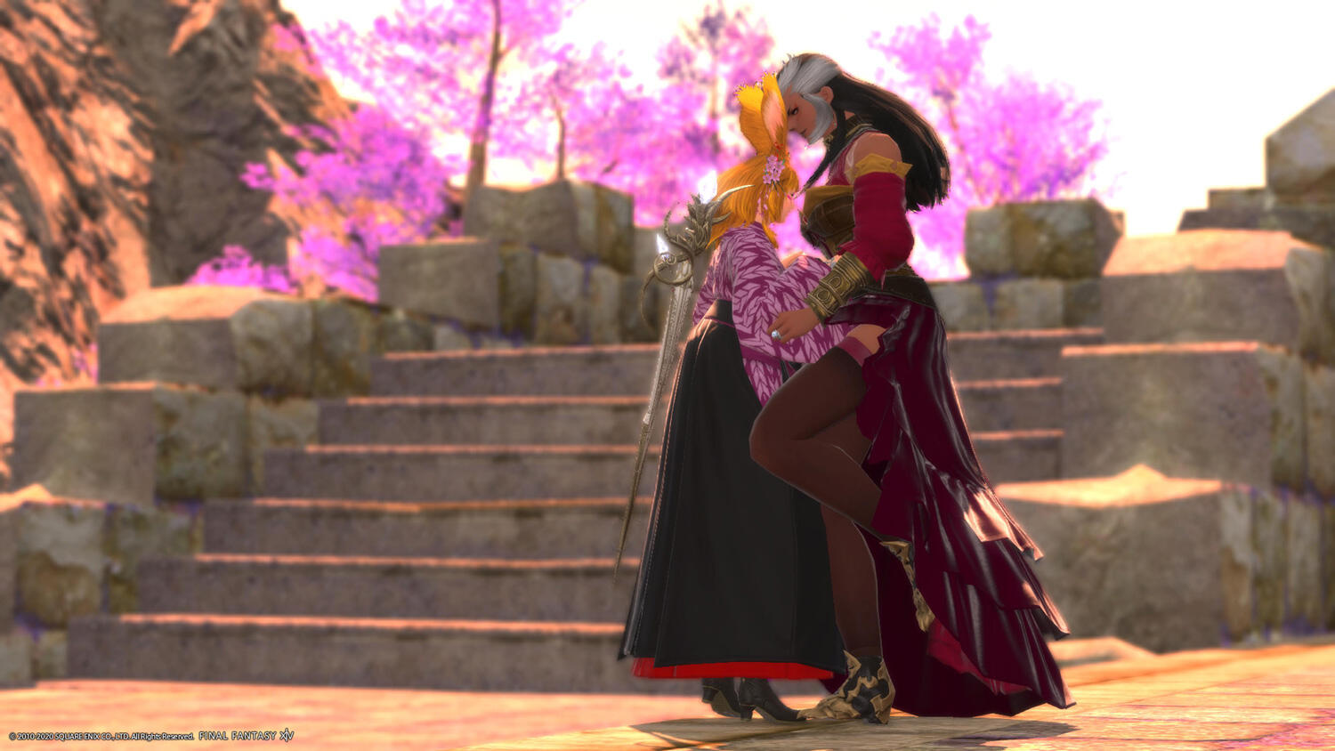 Having inherited the shrine from her father and position of Gūji upon his death, Far Eastern roegadyn Sakaki Inoue was highly unusual in that even as a woman, she was raised from birth to inherit her family’s legacy as caretaker to the shrine and chief priestess. Taking her father’s progressive beliefs to heart, Sakaki always had a strong sense of justice, and chaffed against the Bakufu’s isolationist and neutrality policies as Garlemald rose to power and swept through Othard in conquest. As such, she not only worked in long-distance and secret with the Doman Liberation Front, but also took in those who would otherwise have been cast out from society in the Far East. And so, Shintaisan Temple became a haven of peace in the great primordial forest at the foot of Daitenzan, where the devout come on pilgrimage to shrines to the kami such as this, and those who were taken in to live on the grounds as lower-ranked priests (Negi) to serve them and learn and hone their art in the practice of Geomancy.Sakaki first learned of young Umeko and her plight through a contact in her Doman Liberation Front network, which also keeps alive the practice of Geomancy and worship of the kami in Yanxia in secret even whilst under Garlean occupation, and knew she had to do what she could to help her. And so, she adopted the miqo’te kitten and began training her in earnest as a Miko (shrine maiden) in Geomancy while also doing what she could to treat her acute aethersickness and unravel the mystery behind it. The girl, now known as Sui, would live a rich, peaceful life there, given so much love from her new adoptive mother/mentor and the elderly Negi as well, albeit physically burdened by such severe malaise. Much of her days were spent in training and treatment, and in servitude to the kami, while her passions in weaving, sewing, calligraphy, and brushpainting were all also nurtured. Sakaki also nurtured a very strong sense of justice in Sui, planting the seeds in her fiery soul to fight tooth and claw against the cruelty and injustices of the world, and against the Garlean Empire in particular.Around three summers later, Sakaki received another missive; this time from Tamamizu, of a male raen au ra infant from Sui-no-Sato that had been orphaned when his parents defied the village to fight for the Doman Liberation Front and unceremoniously abandoned at the kojin of the Blues’ doorstep. Having washed their hands of this helpless soul, there was no home for him in Sui-no-Sato, and so Sakaki took him in as her own son. Sui and the boy, now named Yuugao, quickly grew close as siblings, the young miqo’te quickly learning on her feet how to raise a “little dragon.” He always fondly called her “nee-san,” and greatly looked up to her and her gentle lessons in the way of the kami as he himself trained as a Gonnegi (junior priest).When Dalamud fell and Sui in turn fell life-threateningly ill, Yuugao was a constant fixture at her bedside, as was Sakaki and the Negi as they struggled to treat her blisteringly-high fever and convulsions. As her condition had already been steadily declining as she had grown and her monstrous aetherwell continued to develop, Sakaki knew her own knowledge, and that of her Negi as well, were straining for answers for her chosen daughter. And so she began research into foreign conjury and apothecary throughout the known world, and eventually settled upon the great Twelveswood in Aldenard, and their tradition of conjury, as a possible new font of knowledge.And so she reached out to E-Sumi Yan.A great sadness settled into the shrine when it came time for Sui to journey to the other side of the world so she could further find answers for her malaise and receive further training in conjury and apothecary, but Sakaki always felt a hope that she’d find her answers in the end. But even years upon years later, the guilt Sui felt for leaving would remain, and leaving Yuugao especially weighed heavy upon her heart.In the year 5 7AE, when the Doman Liberation Front attempted to take back Doma from Imperial occupation during the Garlean throne's war of succession and was ultimately brutally slaughtered, many that were so much as suspected of being sympathetic to the cause were purged as well. Shintaisan Temple in Koshu, along with Sakaki and the few elderly Negi, were among the purged when it came to light they were supporters of the Doman Resistance Front, Sakaki in particular being the most outspoken. It had come to light when one of the Negi turned and sold their secrets to the Bakufu and the Doman Viceroy Yotsuyu, which was a betrayal that utterly destroyed Sakaki. Gonnegi Yuugao, now 13 summers old, was the sole survivor, having been captured and spared for the value of a young, able body for work, and as a “novelty” as an au ra pet to the Garlean primus pilus sent to put Shintaisan Temple to the torch. Eventually Yuugao would win his freedom when he at last found an opportunity to murder his captor, only to find himself forced into working the rice paddies of Namai in Yanxia. But there were silver linings at least; he found and adopted two war-orphaned children as his own, named Isse and Asami.